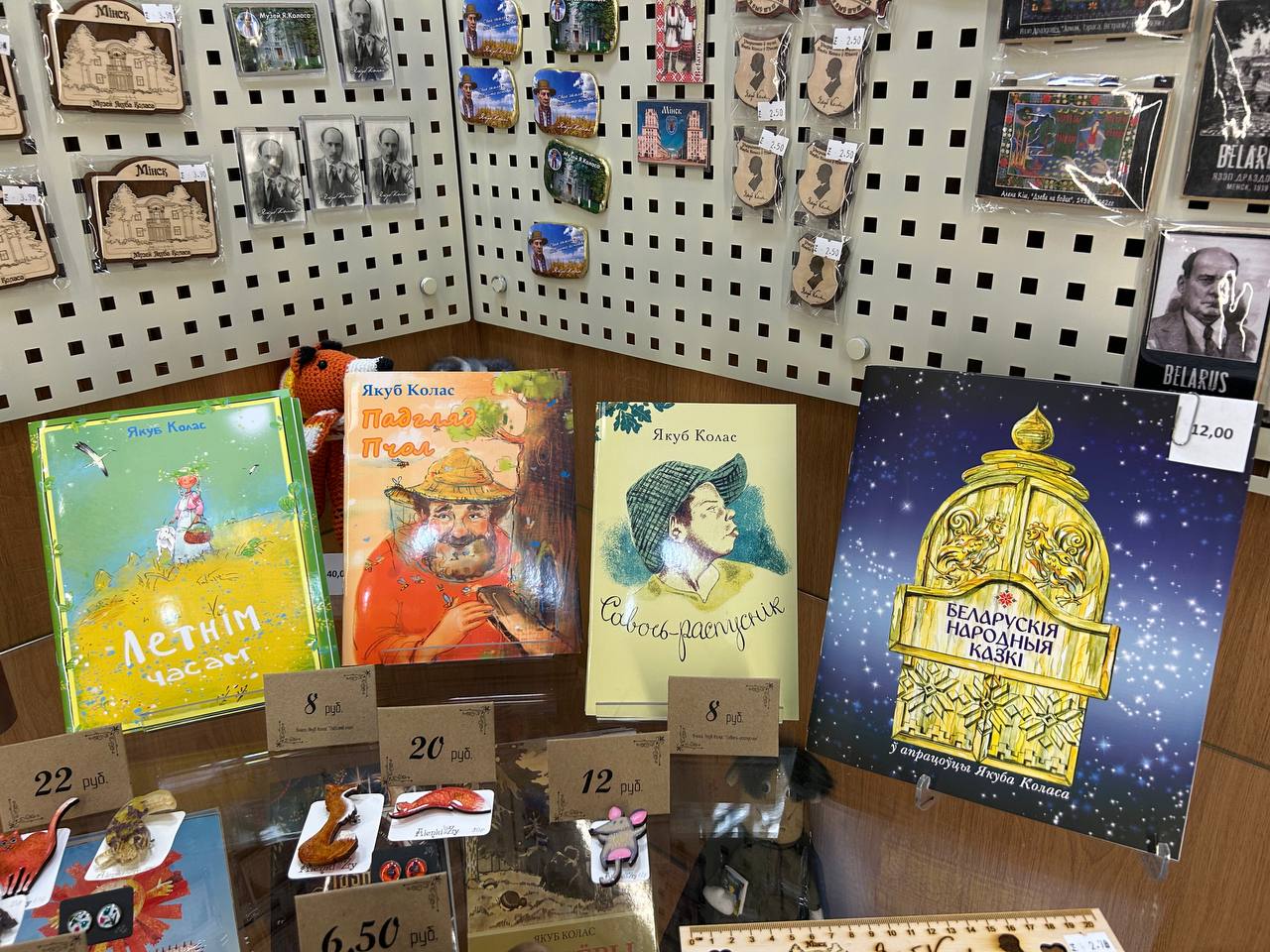 У сувенірнай краме музея вас чакае не толькі магчымасць набыць унікальны сувенір на памяць аб доме паэта, але і шырокі асартымент падарункаў для вас і вашых сяброў, захопленых беларускай літаратурай і культурай. Кожны прадмет, які вы тут знойдзеце, адлюстроўвае багацце і разнастайнасць нашых традыцый – ад кніг вядомых аўтараў да мастацкіх вырабаў, натхнёных беларускай культурай.